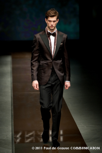 La passerella di Piazza Duomo ha visto sfilare una linea che, come sempre nel caso del designer di origine pugliese, mostra un profondo legame con la musica e trae ispirazione da due giganti del rock sperimentale: David Bowie e Freddie Mercury dei Queen.