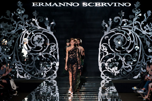 Ermanno Scervino presenta una collezione che richiama mondi diversi che si uniscono in volumi plastici, nell’incontro con elementi iperfemminili e rendono il punto vita un’elemento fondamentale della collezione: l’Inghilterra dell’Hampshire, il mondo equestre e la Venezia del 700.