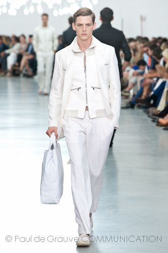 La sfilata di Ermanno Scervino per la p/e 2014 si è distinta per un’ atmosfera raffinata, data sia dall’eleganza dei capi che dai piccoli particolari del fashion show, come lo sfondo marittimo della passerella, un paesaggio dai colori morbidi e tenui. Le modelle hanno sfilato con abiti dai toni più eleganti come il kaki e il bianco e le tonalità più glamour di verde e giallo.