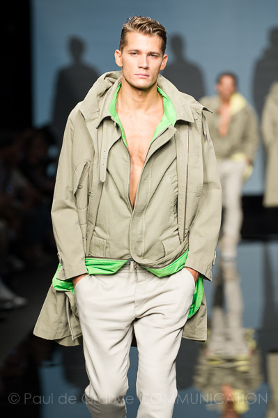 Siamo sulla West Coast mentre assistiamo alla sfilata della collezione primavera/estate di Frankie Morello. “Difficile essere originali” ci dicono nel backstage i due stilisti, ma questa volta la loro collezione ci ha convinto molto. I denim e i rasi, gli indumenti maschili, utilizzati come parte degli abiti femminili, quasi fossero indossati a caso per coprirsi, lingerie e underwear spiccano , sotto vesti da camera. Poi il beachwear giovanile e sportivo, ci proietta negli anni 70. ma le soluzioni di colore e di tessuto ci riportano alla modernità, al futuro. Come nella migliore tradizione West Coast il finale è da miss maglietta bagnata, tanta allegria per una collezione che ha il sole dentro con quel culto, tipico della gioventù, per le rock star.