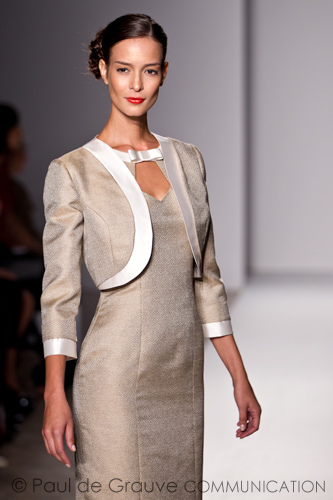 Per Lorenzo Riva sfilano donne che hanno scelto il rigore per vestire di giorno, e quindi abiti dritti, gonne ‘geometriche’, giacchine dai tagli squadrati, soprabiti dai tessuti strutturati e completi confezionati con le tecniche e i materiali più disparati: bouclé di cotone quadrettato, piquet disegnato a nido d’ape, organza effetto moiré, con un’attenzione particolare per i dettagli, che siano semplici profili evidenziati da contrasti cromatici o l’applicazione di rafia intrecciata. Ma quando arriva la sera è la sensualità –composta, mai esagerata- a farla da padrone. I tessuti si ammorbidiscono, entrano in scena georgette, chiffon, seta, mikado e organza e la musica cambia: il rigore lascia spazio alla leggerezza degli abiti-caftano impreziosite da ricami, delle ariose stampe floreali, delle camicie scollate e dei vestiti da sera che osano, nel rispetto di una femminilità garbata, una linea a sirena, costruita con pieghe strategiche che esaltano la silhouette, il tutto all’insegna dell’eleganza firmata Lorenzo Riva.