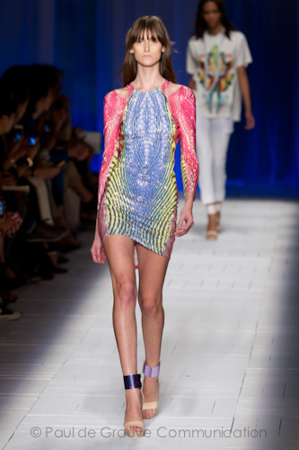 La silhouette è slanciata e definita da giacche asciutte dalla spalla insellata, pantaloni slim a vita alta con la piega cucita al centro. I classici colori avorio e blu e i neutri beige e marroni a effetto naturale si alternano a più stravaganti rossi, bordeaux, blu elettrici e stampe vivaci che pervadono trasversalmente l’eleganza e la formale raffinatezza della collezione rendendola equilibrata e briosa.