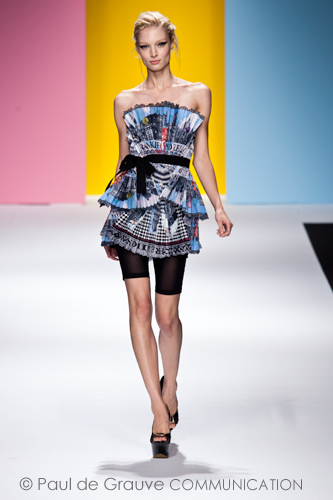 La collezione primavera estate 2013 non delude le aspettative degli appassionati del marchio. L’intimità del giardino accoglie la sfilata in un’atmosfera intima dal sapore di un salotto privato nonostante riflettori e flash, proprio come si conveniva ai couturier del secolo scorso. Il romanticismo ottocentesco entra in scena da subito con le prime uscite: il nero, la trasparenza, i fiocchi, la preziosità di nastri e stringhe sono i protagonisti di deliziose culottes e bustier da vera nobildonna d’altri tempi.