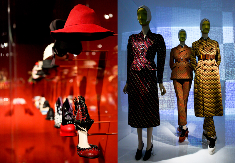 Due donne messe a confronto attraverso un percorso espositivo articolato in sette gallerie tematiche in cui emergono differenze e parallelismi nell’approccio e nell’interpretazione delle due designer al medesimo tema, mediante l’accostamento delle loro creazioni. L’esposizione è costruita su 90 modelli e 30 accessori, realizzati da Elsa Schiaparelli tra gli anni Venti e gli anni Cinquanta e da Miuccia Prada dagli anni Ottanta ad oggi, provenienti per lo più dal Costume Institute (la sezione del Metropolitan dedicata alla moda), dagli archivi Prada e da collezioni private.