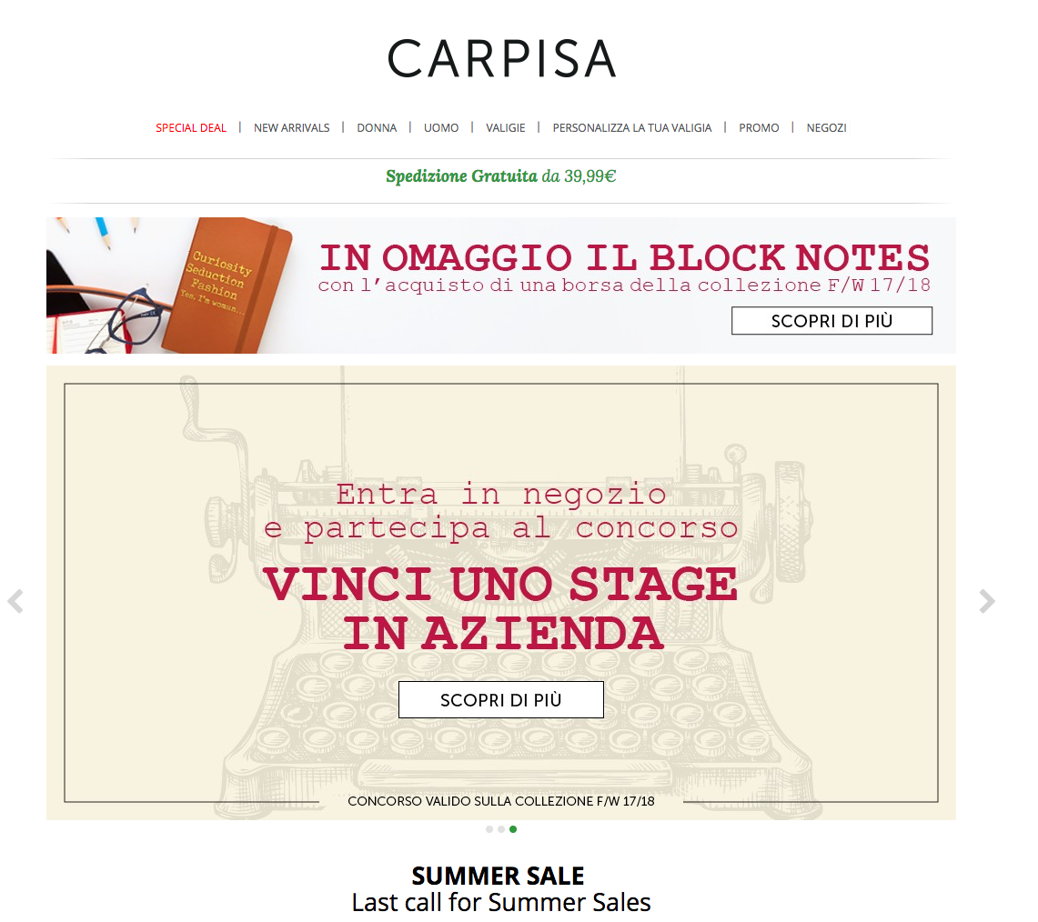 Per partecipare e provare vincere uno stage di lavoro bisogna acquistare da Carpisa un prodotto , che non è un prodotto qualsiasi o in saldo, ma uno a prezzo pieno della nuova collezione F/W 2017-18 quindi spendere una cifra minima intorno ai 40 euro. Diciamo che è chiara la finalità della promozione: aiutare vendere in piena estate i primi stock di borse invernali giacenti sugli scaffali dei negozi.