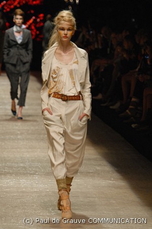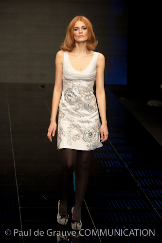Gli accessori diventano fondamentali per sdrammatizzare l’essenzialità della collezione: guanti traforati con applicati piccoli punti luce, orecchini pendenti di gusto barocco, borse a mano in vernice, mini pochette rigide. Le calzature alternano decolletè dai tacchi altissimi e mocassini in vernice con applicate delle fibbie che ricordano quelle dei sovrani del Settecento francese.