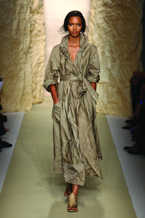 Fuori piove, diluvia a Milano! La temperatura si è abbassata sensibilmente. Siamo in estate? Sicuramente lo siamo all’interno della sfilata..