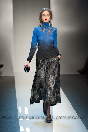“Molto azzurro” ci dice Scervino nell’intervista video esclusiva, e materiali mixati in modo moderno osservando molto i tessuti di..
