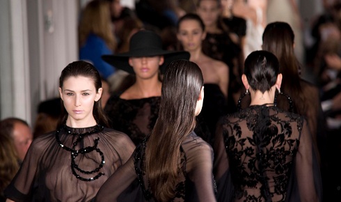 Nino Lettieri esalta l’allure di una donna elegante immaginata tra le vie e i profumi della bella Positano mentre fa ondeggiare fianchi e tessuti-piuma, come georgette di seta e chiffon, catturando gli odori e colori dei giardini d’estate nei motivi floreali degli abiti che indossa. Così si distingue Positano “Mon Amour”, la nuova collezione haute couture p/e 2012 presentata dallo stilista partenopeo presso il Conservatorio Santa Cecilia, luogo magico e importante istituzione musicale romana.