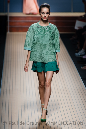 E chi non vorrebbe sposarsi con un abito come quello messo a punto dal designer libanese? Sarà anche merito degli gli studi effettuati in Francia, dei lavori per grandi firme come Dior e Chloé, ma resta ancora inspiegabile come riesca a generare un’immagine femminile tanto aristocratica. Lo charm di una donna che si appresta pronunciare il fatidico sì è evidenziato da un delizioso cappellino che ricorda i fasti di Versailles.