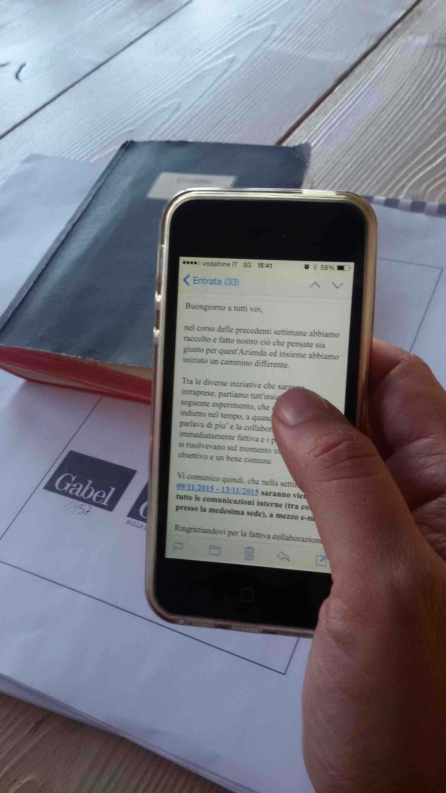 produttivi (efficienza e qualità ) e umani (velocità, salute, rapporti). Immaginare un’intera settimana senza email in azienda è possibile? Secondo la Gabel lo è. Il motivo? Riscoprire la capacità di comunicare guardandosi negli occhi e non dietro uno schermo, tra colleghi abituati – come accade in tutte le realtà lavorative – a scriversi una mail anche a poche scrivanie di distanza, perdendo tutto il bello (e anche la fatica, certo) di parlarsi “faccia a faccia”. La scommessa nasce dalla volontà dell’azienda di un ripensamento generale delle dinamiche interne, con l’obiettivo di raggiungere una sempre maggiore soddisfazione sul luogo di lavoro, andando a studiare abitudini quotidiane e meccanismi ormai consolidati per capire come essere, semplicemente, più felici.