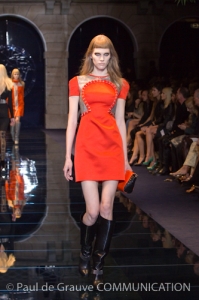 C’è Anna Wintour in prima fila ma la sfilata parte con il canonico ritardo, mostrando uno stile sexy rock regale che seduce in un’atmosfera dark.